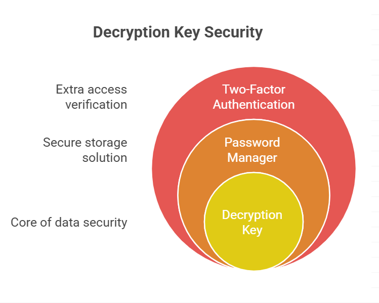 • Use a Password Manager: Password managers like 1Password or Bitwarden can securely store your decryption key and other passwords.